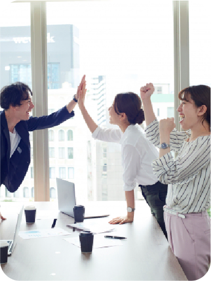 すべてのサービスは、社員一人ひとりの「やってみたい」から。主体性とひらめきを尊重し、変化を楽しむカルチャーを育てます。働くことが自己実現のプロセスとなるそんなチームを目指しています。