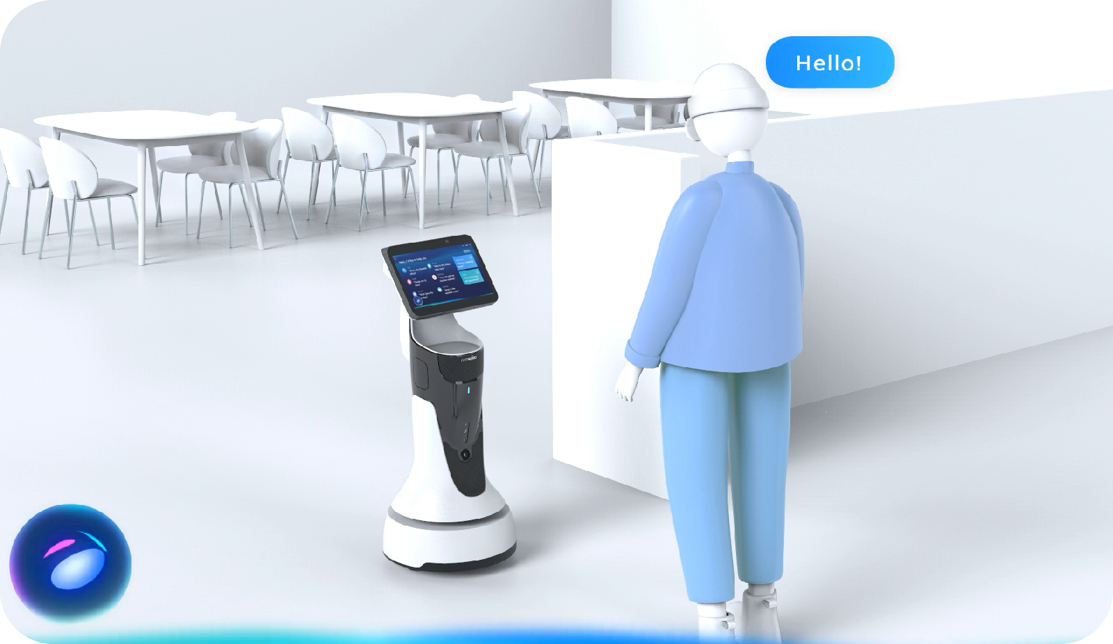 フレキシブルに動き、心地よく迎えるコンパクト受付・案内ロボット。