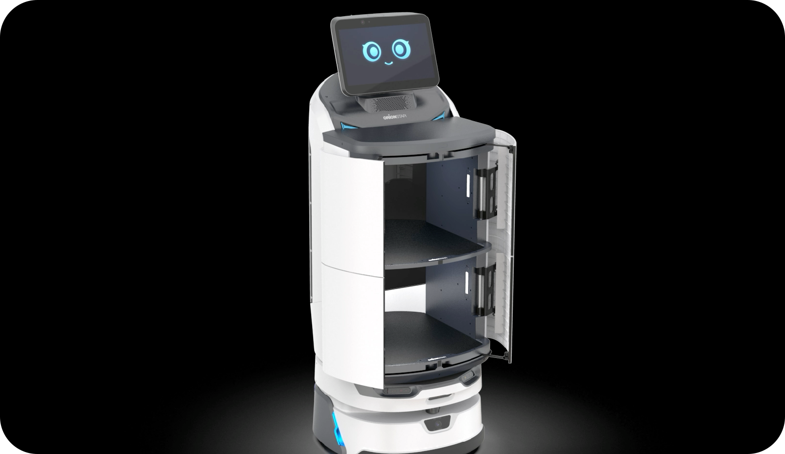 LuckiBot Pro Autodoorは、レストラン・ホテル・医療施設などで活躍する、配膳に特化したAI配送ロボットの最新モデルです。
