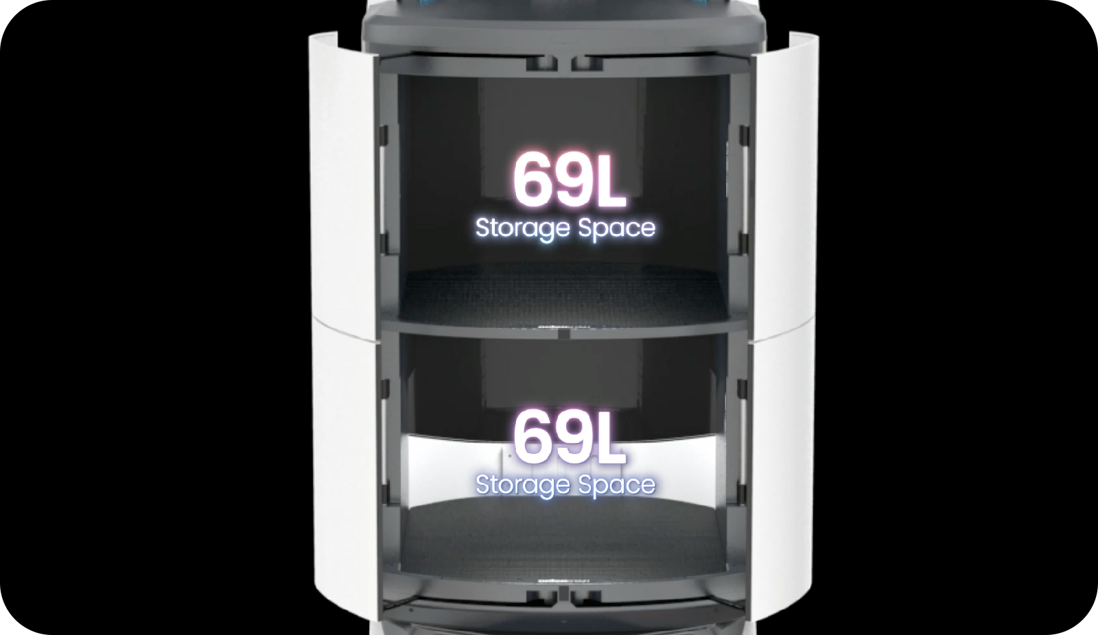 複数品や大型容器も余裕で収納できる広さを確保。レストランやホテルだけでなく、医療・オフィス配送にも柔軟に対応します。